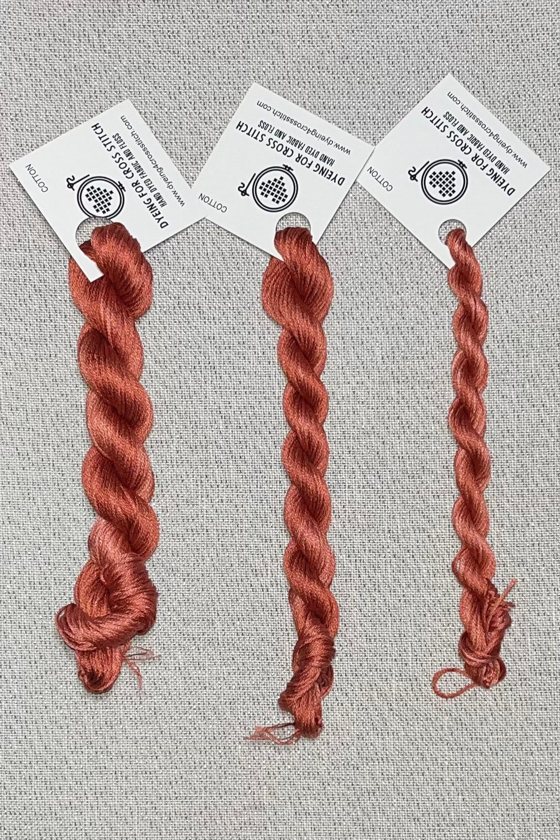 The base thread is 6-stranded white DMC embroidery floss. Each skein is unique as it is hand dyed.