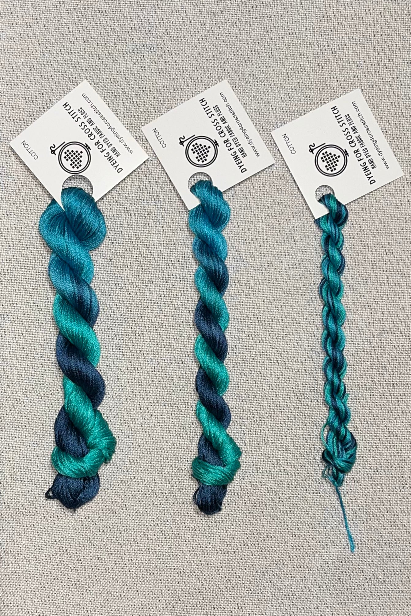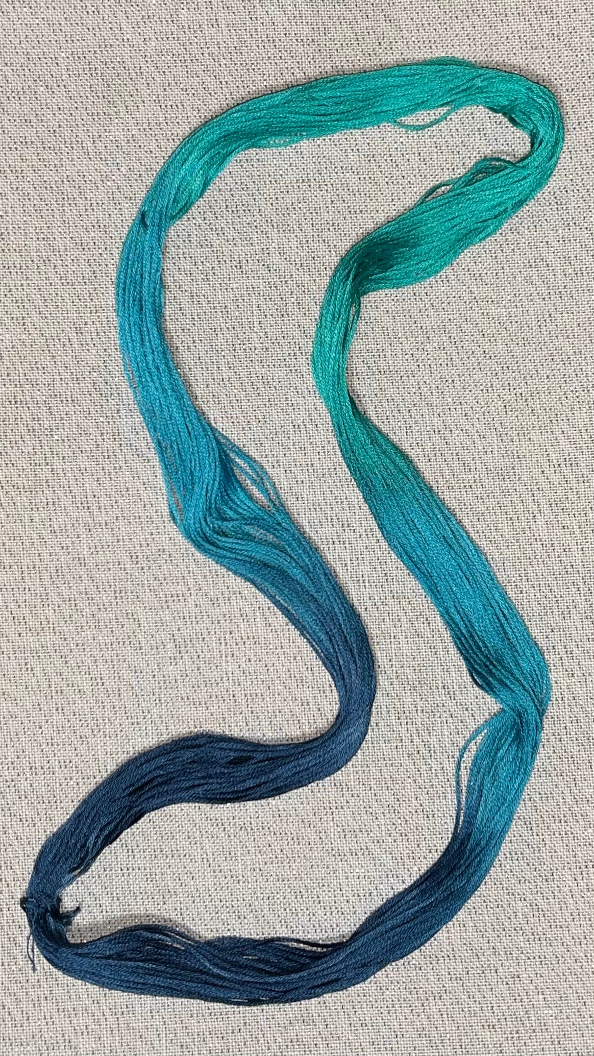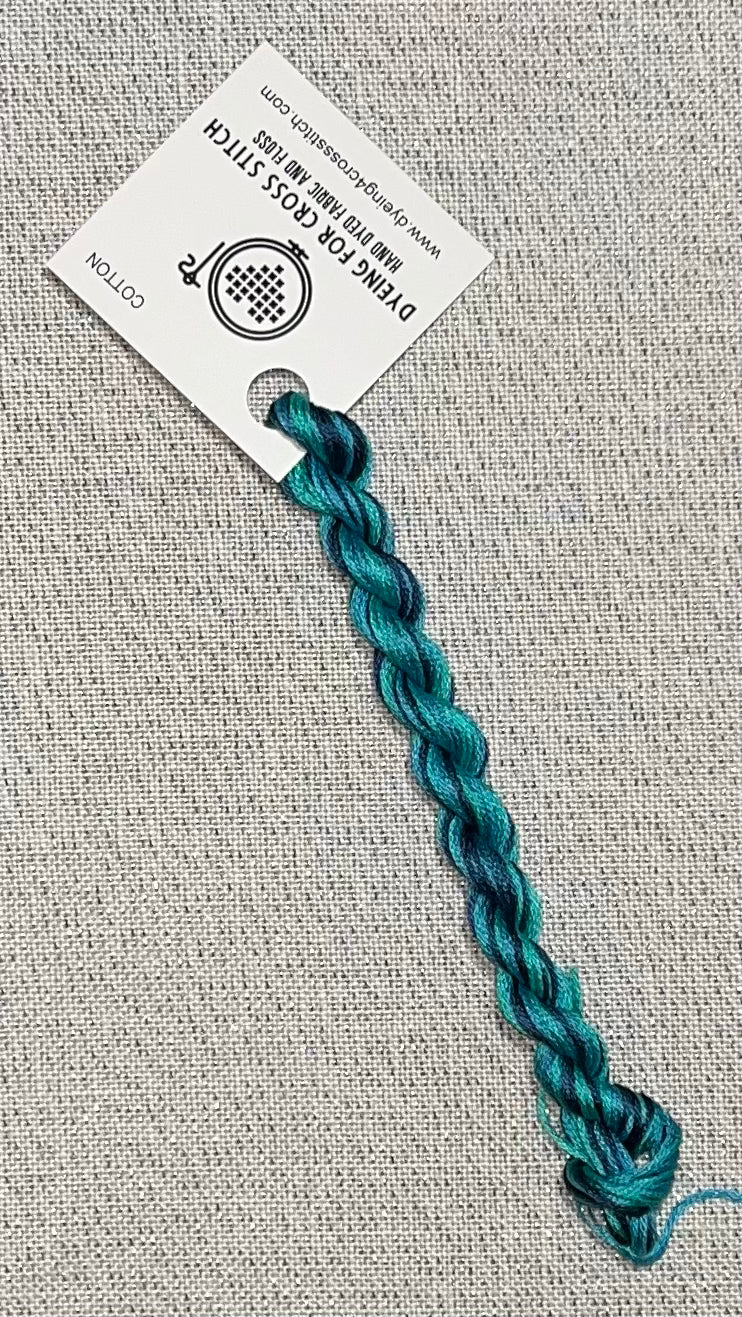 The base thread is 6-stranded white DMC embroidery floss. Each skein is unique as it is hand dyed.