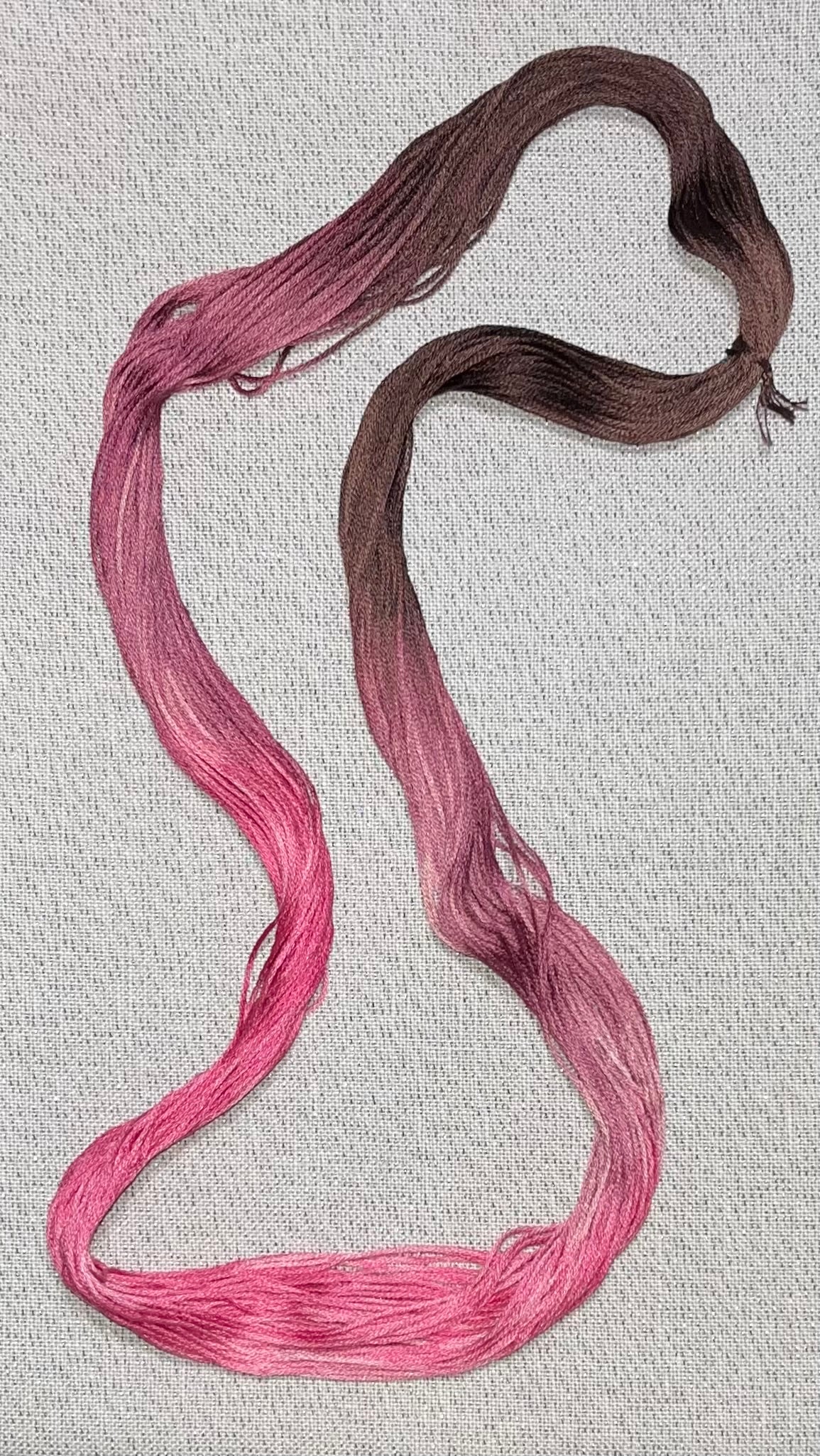 The base thread is 6-stranded white DMC embroidery floss. Each skein is unique as it is hand dyed.