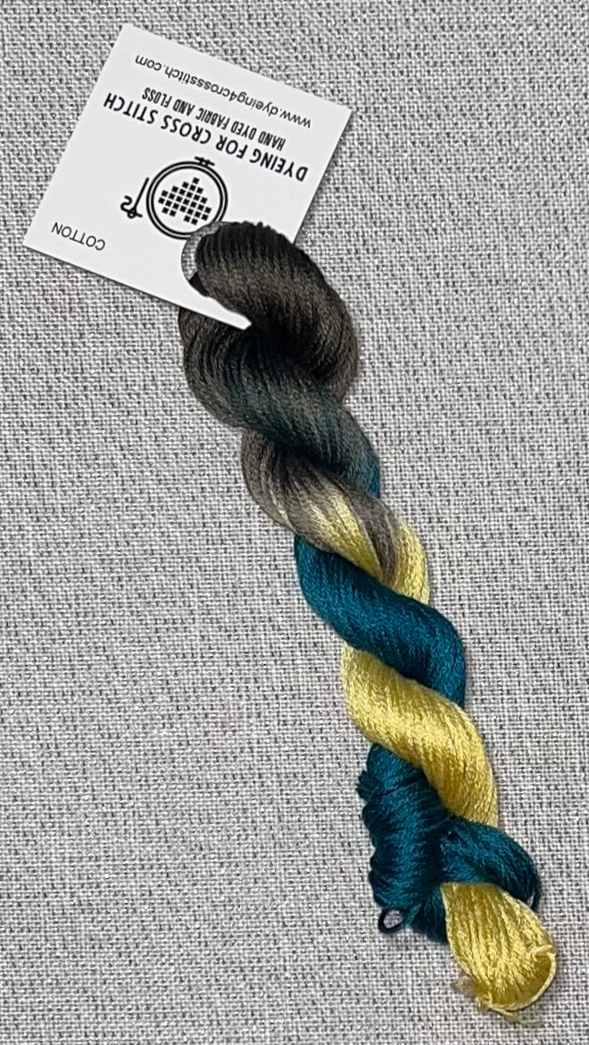 The base thread is 6-stranded white DMC embroidery floss. Each skein is unique as it is hand dyed.