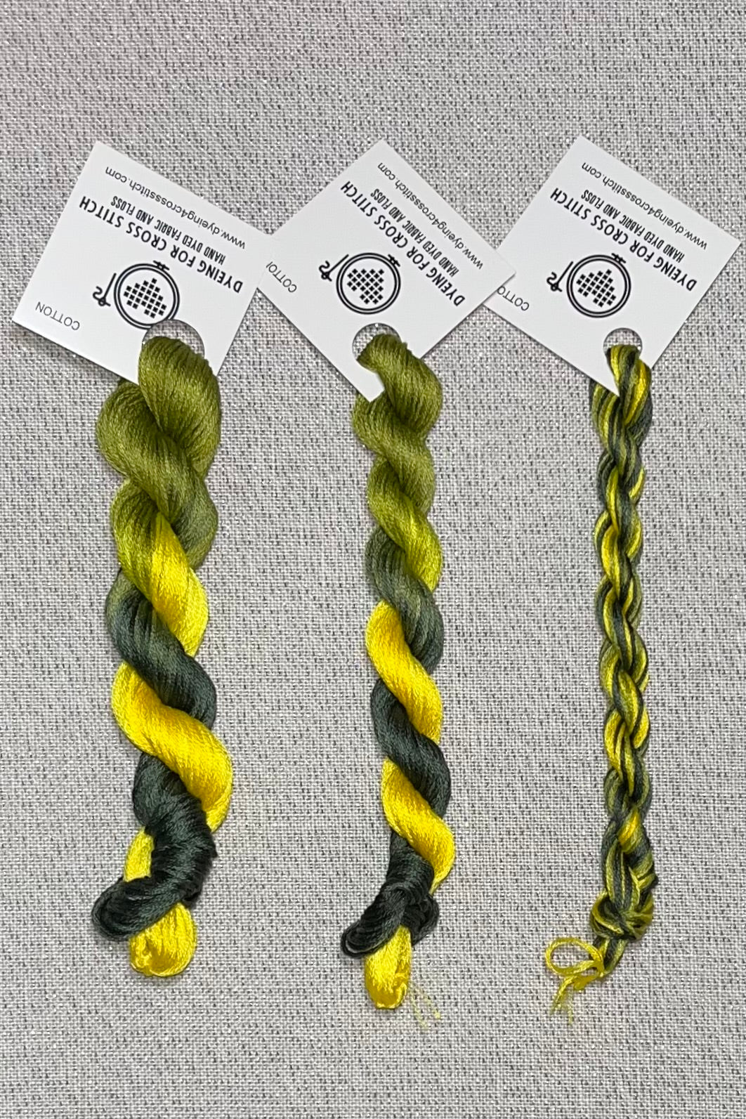 The base thread is 6-stranded white DMC embroidery floss. Each skein is unique as it is hand dyed.
