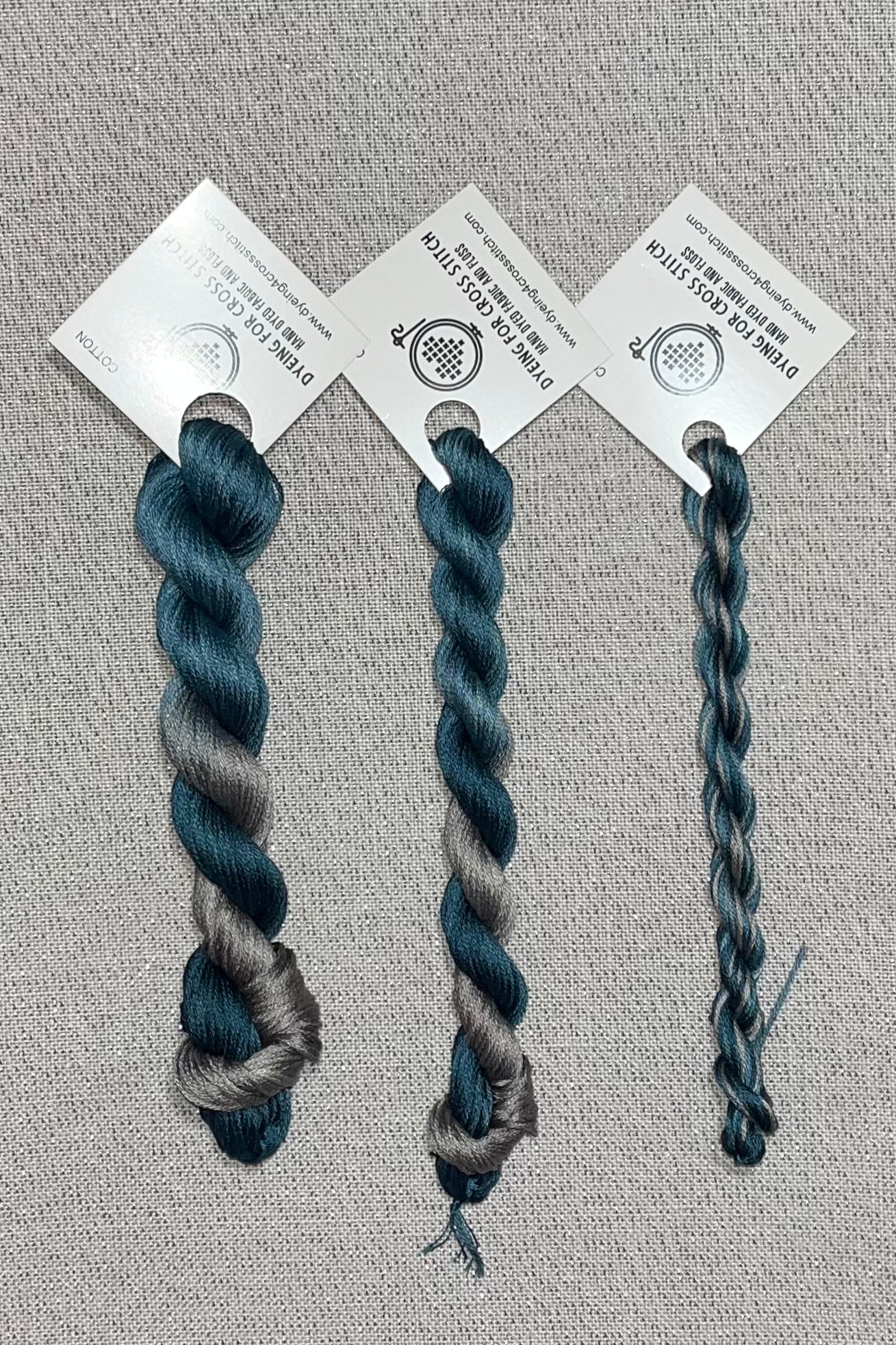 The base thread is 6-stranded white DMC embroidery floss. Each skein is unique as it is hand dyed.